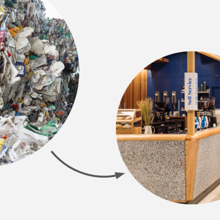 We transform plastic waste into beautiful, forever recyclable building materials.