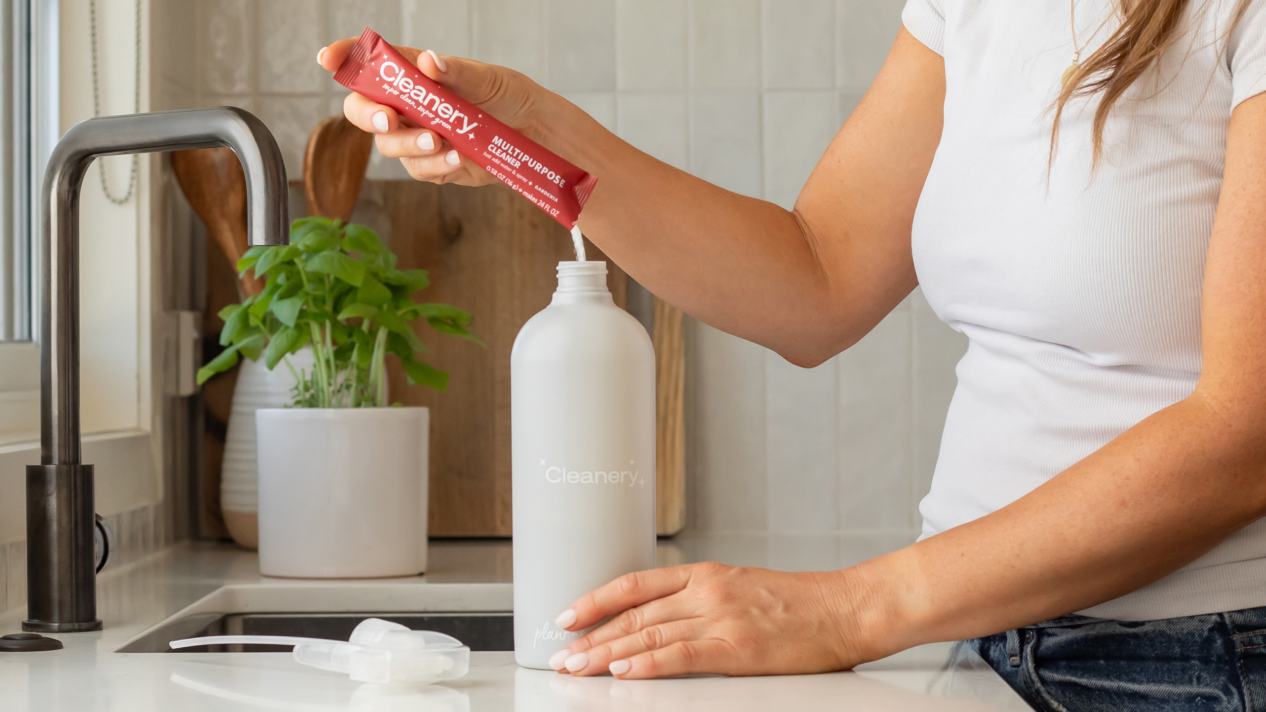Cleanery makes cleaning and personal care products in powder form, eliminating 99% of packaging waste compared to traditional liquid cleaners. Instead of shipping heavy bottles filled with water and chemicals around the world, customers buy small refill sachets of concentrated powder that mix instantly with tap water in reusable bottles.