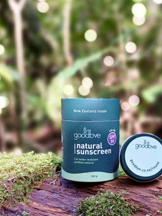 Goodbye produces natural, water-free sunscreen. The company is innovating in refillable and recyclable packaging for both retail and industry needs.